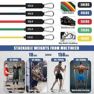 23Pcs Resistance Bands Set Workout Bands, 5 Stackable Exercise Bands with Handles, 5 Resistance Loop Bands, Jump Rope, Figure 8 Resistance Bands, Headband, Cooling Towel
