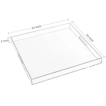 24×24 Inches Clear Acrylic Serving Tray with Handles Extra Large Ottoman Tray Decorative Tray Spill-Proof Coffee Table Space Saver Oversize Counter top Organizer Platter with Safe Edge