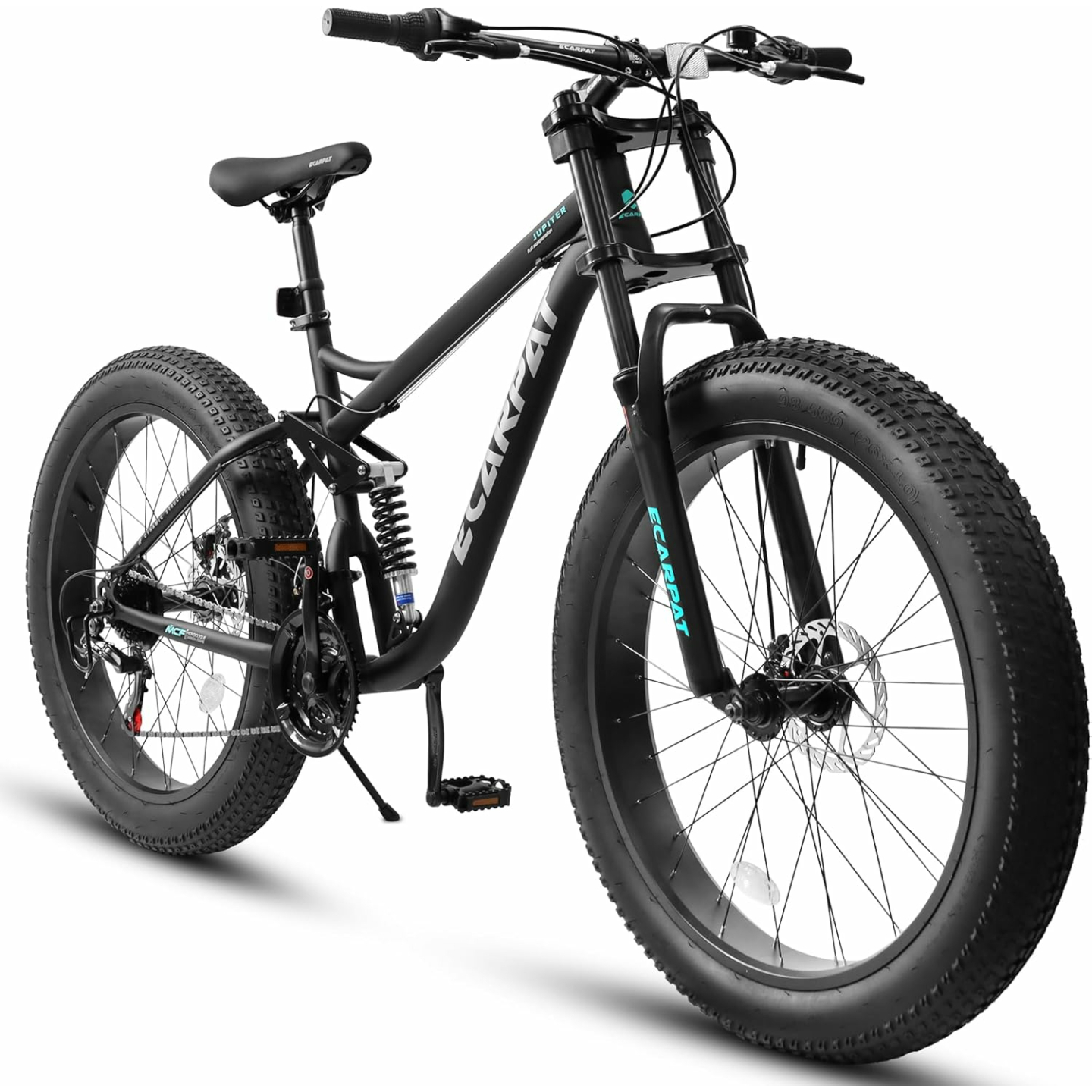 Compared to other mountain bikes on the market, the Ecarpat model stands out for its full suspension system and dual disc brakes, often found in higher-end models. While other bikes may offer similar features, this bike provides exceptional value by combining all these elements into an affordable package. It's an excellent choice for those who want a well-rounded mountain bike without breaking the bank.