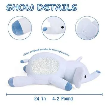 24" 4.2lbs Elephant Weighted Stuffed Animals,Cute Cuddle Plushie Toy Weighted Elephant Plush Throw Pillow for Children Kids Adults(Elephant)