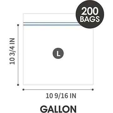 Show more If you're looking for the ultimate solution for food storage, look no further than our incredible heavy-duty food storage bags. Designed for durability and convenience, you will receive four boxes containing 50 gallon bags each, totaling an impressive 200 bags. Each bag measures 10.56 inches by 10.75 inches and features a specially engineered zipper seal with easy-grip open tabs.