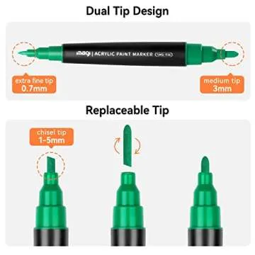 Show more Bring your creativity to life with our versatile Double Tipped Acrylic Paint Pens, designed for artists of all skill levels and ideal for an array of crafting projects. These premium-quality paint pens feature a unique double-tipped design, offering a fine point (0.77mm) for intricate details and a bold bullet tip (3mm) along with a chisel tip (1-5mm) for broader strokes. Whether you're rocking your next mural or crafting ornaments, these pens provide an excellent tool for expressing your artistic flair.