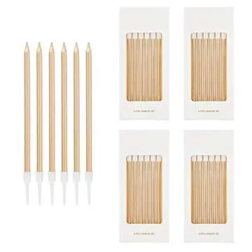 24 Count Metallic Birthday Candles Slow Burning Happy Birthday Cake Candles Long Thin Cake Cupcake Candle in Holders for Lucky Party, Wedding Party, Birthday Party Congregation (Champagne Gold)