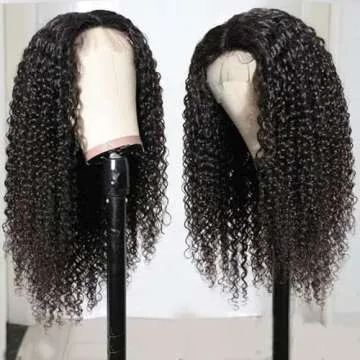 24 inch Curly Lace Front Wig Human Hair 180% Density Curly Glueless Wigs Human Hair Pre Plucked 13x4 Kinky Curly Human Hair Wig for Women Kinky Curly Transparent Lace Front Wigs Natural Black