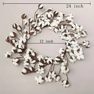 Elegant 24 Inch Real Cotton Wreath - Ideal Farmhouse Decor for Holidays