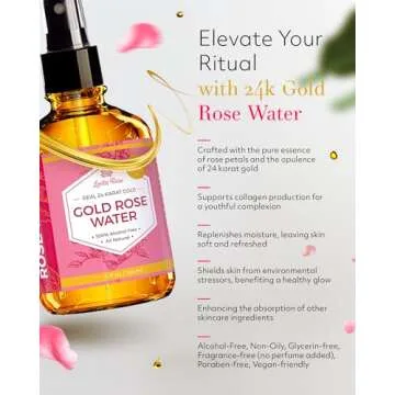 24 Karat Gold Rose Water Toner by Leven Rose Organic Natural Moroccan 24K Rosewater Toner 4 oz