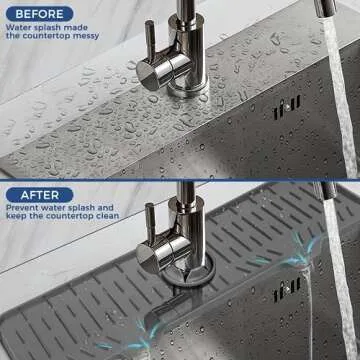 Show moreIntroducing the ultimate kitchen companion: the 24" Kitchen Sink Faucet Splash Guard Plus Size Silicone Sink Faucet Drying Mat. This innovative mat is not just about aesthetics but also efficiency, serving multiple functions as a sponge holder, soap tray, and drying pad for your sink area. Its unique 5° slope design directs water straight into the sink, making clean-up quick and eliminating soggy counters or water pooling around your sink. Imagine a kitchen where moisture is effortlessly managed, leaving you with a cleaner, drier workspace right when you need it!