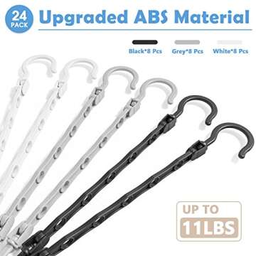 Show moreIntroducing the ultimate solution for maximizing your closet space: our 24 Pack Hangers Space Saving Magic Hanger Organizer. This innovative set includes 24 multifunctional hangers in a stylish trio of colors—black, white, and grey. Designed to accommodate up to 120 pieces of clothing, each hanger can hold up to 5 garments either vertically or horizontally, enabling you to optimize your storage in ways you never thought possible! Say goodbye to clutter and hello to organized elegance with these cleverly designed space-saving hangers that ensure your clothing is stored with care. Measure 15.3 inches long and 2.2 inches wide, these hangers fit seamlessly into any wardrobe arrangement.