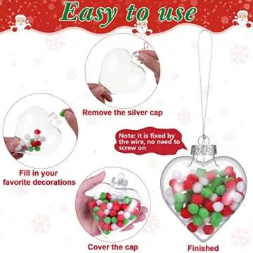 24 Pcs Christmas Clear Heart Ornament for Crafts DIY Fillable Christmas Ornament Balls 100 mm Plastic Heart Shaped Filling Transparent Hanging Box with Rope for Xmas Tree Decor Wedding Party Present