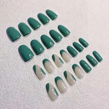 24 Pcs Press on Nails, Sunjasmine Fake Nails with Designs, Acrylic Nails False Nails with Nail Glue for Women (Medium Green)