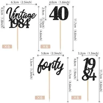24 PCS Vintage 1984 Cupcake Toppers Glitter Cheers to 40 Fabulous Forty Cupcake Picks 40th Birthday Wedding Anniversary Party Cake Decorations Supplies Black