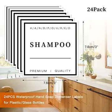 Show moreTransform your bathroom and kitchen with the elegant and practical 24 PCS Waterproof Soap Label Stickers. This delightful set includes 24 high-quality waterproof labels designed specifically for a variety of soap and lotion dispensers. Each label is beautifully crafted with clear, easy-to-read category names such as dish soap, hand lotion, body wash, and more, ensuring your personal care products and cleaning supplies are organized and easy to identify. Sized at a perfect 3 x 3 inches, these labels are versatile enough to fit on both glass and plastic bottles, adding a touch of finesse to your home decor while providing functional help in your everyday life.