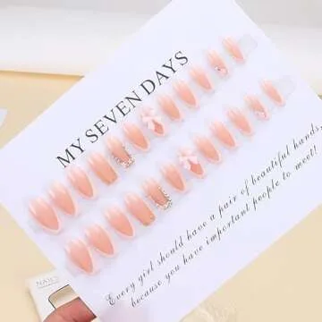While there are various options out there, our 24 Pcs Bow Press on Nails stand out due to their exquisite design and quality materials. Many competitors offer synthetic nails without the added luxury of rhinestones and eco-friendly features. Our nails are not only visually appealing but also considerate of your health, making them an appealing choice for conscientious consumers. Furthermore, the included accessories enhance usability, allowing you to achieve salon-quality results even at home.