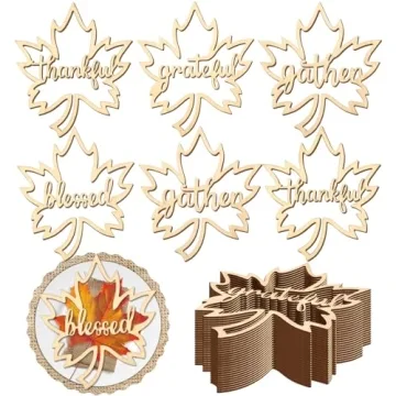 Show moreTransform your Thanksgiving gathering into a warm and inviting celebration with our 24 Pieces Fall Thanksgiving Maple Wooden Plate Decor. This delightful set features beautifully crafted wooden cutouts representing the essence of gratitude and togetherness. Designed with motifs of elegant maple leaves and adorned with heartfelt messages like "thankful", "grateful", "blessed", and "gather", these decorations not only enhance the aesthetic appeal of your table but also create a harmonious festive atmosphere, ensuring your holiday meal is memorable for all your guests. Made of high-quality wood, these cutouts are polished to perfection, exhibiting a charming rustic vibe that pairs beautifully with any farmhouse-style decor.
