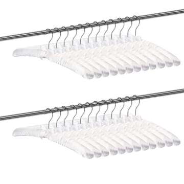 24 Pieces Satin Padded Hangers Satin Hangers with Anti-Rust Swiveling Hook Shoulder Hangers for Hanging Dresses, Sweaters, Suits and More (White)