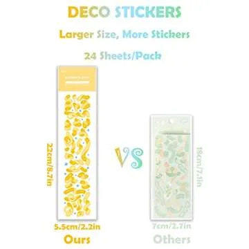 24 Sheets Korean Deco Stickers Set, DIY Colorful Glitter Self Adhesive Stickers with Heart Ribbon Star Love Style, Kpop Potocard Korean Stickers, Cute Deco Stickers (RainbowTown-24P)