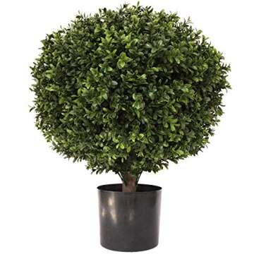 24" Tall 16” Round Artificial Topiary Ball Boxwood Trees (Set of 2) by Northwood Calliger | Highly Realistic Potted Shrubs for Indoor/Outdoor | UV Protected