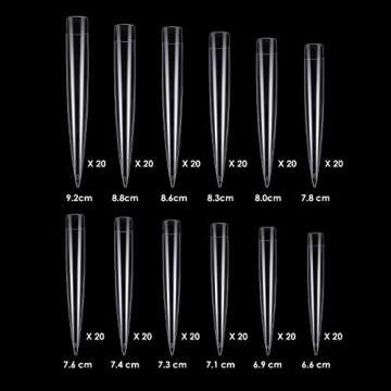 240 Pieces Extra Long Nail Tips Stiletto Nail Tips Oval Stiletto False Nails Clear Long Stiletto Fake Nail Artificial Press on Fake Nail for DIY Nail Salon Performances, Women and Girl (Black)
