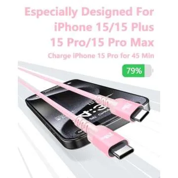 240W 10FT USB C to USB C Cable Nylon Braided USB Type-C Cord Fast Charging for iPhone15/Pro/Plus/Pro Max,Samsung Galaxy S24 S23,MacBook Pro/Air,iPad Pro/Air/Mini 6,iMac, Dell XPS,Switch Pink