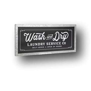 Large Vintage Metal Laundry Service Wash and Dry Sign for Decor