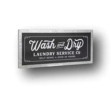 Show moreIntroducing the 24in LARGE Metal Laundry Service Wash and Dry Sign Wall Decor – the perfect addition to your laundry room that combines functionality with classic charm. Crafted from high-quality metal, this sign not only provides a practical reminder for all your washing tasks but also serves as an eye-catching decorative piece. With its generous dimensions of 10 inches by 23 13/16 inches and a thickness of 3/4 inches, this sign is designed to stand out while seamlessly integrating into your laundry space. Its vintage and weathered look offers a touch of nostalgia, making it a delightful focal point that enhances the overall ambiance of your laundry room, whether it's in a new home or a classic setting. Transform mundane laundry chores into a more enjoyable experience with this stylish sign that is as durable as it is decorative.
