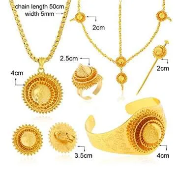 24K Yellow Gold Plated Ethiopian Jewelry Sets, African Bridal Jewelry for Ethiopian Women