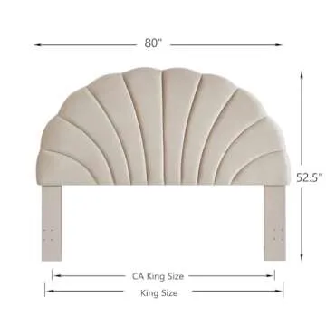 24KF Stunning Crown Design King Headboard, Upholstered Soft Velvet Petal Pattern Headboard King/CA King-Beige