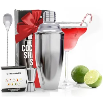Revamp your cocktail-making experience with the Cresimo 24oz Cocktail Shaker Set, a must-have for every home bartending aficionado! This memorable shaking kit is expertly crafted from high-quality stainless steel to ensure durability and a brilliant shine that impresses every time. Designed for enthusiasts and novices alike, this shaker set bridges the gap between functionality and elegance, turning every drink into a masterpiece. Its generous 24oz capacity allows you to conveniently mix...