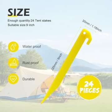 24pcs Durable Yellow Plastic Tent Pegs - Essential for Camping & Events