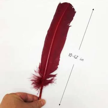 24Pcs Burgundy Turkey Feathers 10~12 inch,Beautiful Long Feather for Crafts,Bulk Big Size Bilateral Natural Feather,for Wedding Dress and Party Decoration,DIY Fabricating Handicraft Article (Burgundy)