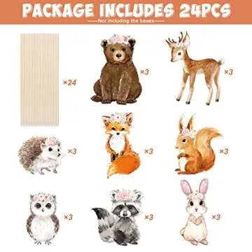 24PCS Floral Woodland Animal Centerpiece Sticks Pink Flowers Boho Woodland Creatures Shaped Cutouts Table Toppers for Forest Friends Girls Baby Shower Wild One Camping Party Supplies Cabin Home Decor