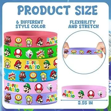 24pcs Mario Birthday Party Supplies, Mario Party Decorations Party Silicone Bracelets