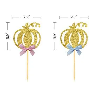 24pcs Pumpkin Gender Reveal Cupcake Toppers - Baby Shower Girl or Boy Party Decorations Supplies, Pumpkin Food Pick (Blue and Pink Bow)
