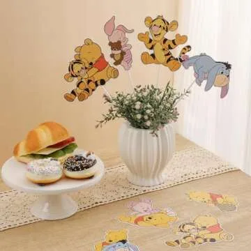 24PCS Winnie Party Decorations,Centerpieces Decorations Stick Table Toppers For Birthday Party Supplies Decor Table Toppers