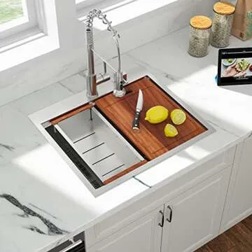 25 Drop Laundry Sink Workstation - Sarlai 25x22 Kitchen Sink Stainless Steel 16 Gauge Top Mount Drop In Overmount Deep Single Bowl Laundry Utility Sink Basin