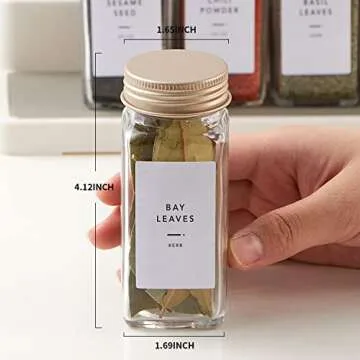 25 Pcs Spice Jars with Label- Glass Spice Jars with Gold Metal Caps,Shaker Lids, Funnel, Chalk Pen, Brush,Cleaning Cloth,Skiileor 4oz Seasoning Containers Bottles for Spice Rack, Cabinet, Drawer