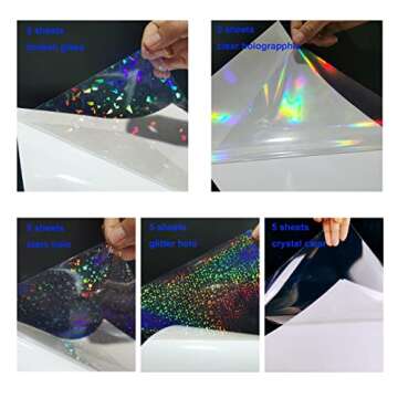 25 Sheets A4 Size (8.25”x11.7“)Holographic Sticker 5 Styles Mixed Clear Adhesive Laminted Film Holographic Overlay No need Machine