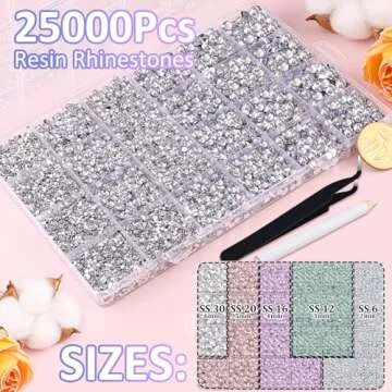 25000Pcs Resin Rhinestones with Tweezers for Crafting, Silver Clear Flatback Gems, Bedazzling Crystal with 3Pcs 10ml B7000 Jewelry Glue for DIY Crafts Clothing Tumblers Shoes Fabric Nail Art