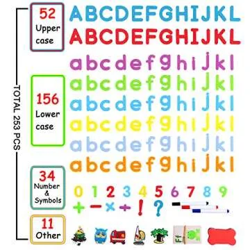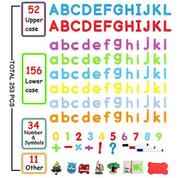 253 PCS Magnetic Letters and Numbers Kit with Double-Sided Magnetic Board and Storage Box Foam Alphabet ABC Refrigerator Magnets Classroom Educational Toys for Kids Children Toddlers