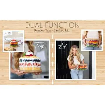 25DOL XXL 125 Ounces Clear Glass Salad Bowl Dish【Hand Blown】 Dual Function Bamboo Lid - Extra Large Mixing Bowl for Salads, Dessert, Fruit, Punch - Centerpiece Large Serving Bowls for Entertaining