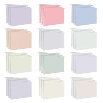 Show more Introducing the 25pcs MagDurnus Hanging File Folders – the perfect solution for your organization needs! These elegantly designed folders offer a refreshing light color palette and a stylish aesthetic that enhances any workspace. Each folder is crafted from high-quality materials, ensuring that they are not only functional but also durable. With a letter size format, they fit standard filing cabinets and desks comfortably. What sets these folders apart is their innovative 1/5 adjustable cut tabs that provide flexible labeling options, allowing for easy customization and quick identification of your documents. With twelve assorted styles included in each pack, you can mix and match to create a visually appealing filing system that suits your personality and taste.