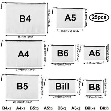 25pcs Multisize Mesh Zipper Pouch Bags, Waterproof Zipper Bags, 8 Sizes Waterproof Plastic Document Pouch, Bags for Travel Storage, Office Supply and Home Organize