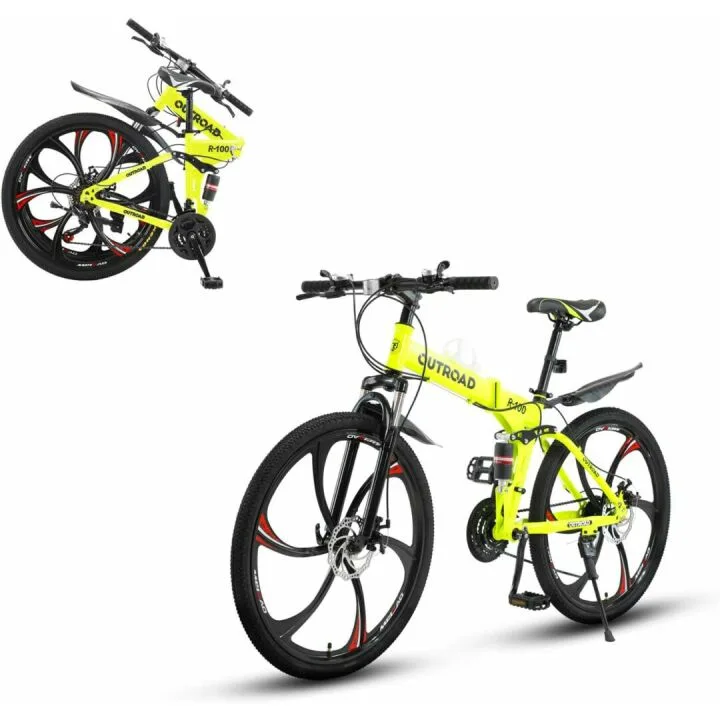 Show moreIf you're looking for the ultimate gift that blends fitness, fun, and functionality, the Omelaza 26-inch Folding Mountain Bike is your perfect choice. This 21-speed mountain bike is designed for adults and offers a versatile experience with its foldable frame, making it convenient for storage and transport. It features a robust dual-disc brake system for reliable stopping power and front suspension to tackle various terrains comfortably. The vibrant green color adds a striking appearance, making it an eye-catcher whether you're biking through the city or down rugged trails.