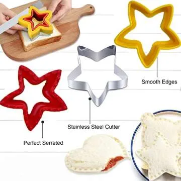 Show moreIntroducing the Yubng 26 PCS Sandwich Cutter and Sealer, the ultimate solution for transforming mealtime into a fun and engaging experience for your little ones. This diverse set includes 6 unique shapes, allowing for a creative culinary journey where sandwiches, fruits, and veggies become exciting works of art! Crafted from premium food-grade stainless steel and high-quality PP plastic, each cutter ensures safety with smooth edges that protect tiny hands while offering durability that surpasses conventional plastic cutters.