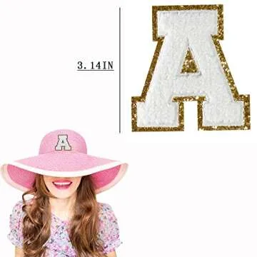 26 PCS White Iron On Letter Patches, Stick on Chenille Letters Patches Applique Sewing Clothing Badges with Glitters Border for Shirts Jackets Jeans Hats Bags Shoes