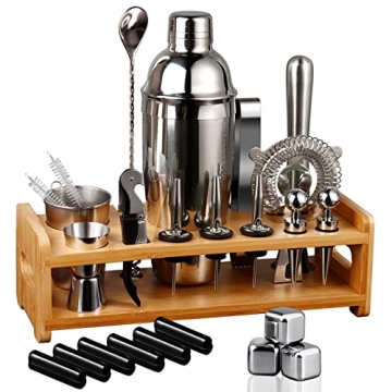 All-Inclusive 26-Piece Bartender Kit with Bamboo Stand for Home Bars and Gifting