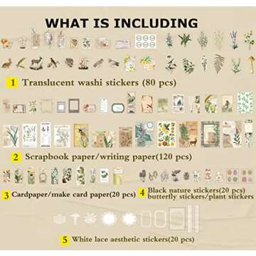 260 Pieces Vintage Scrapbooking Supplies Aesthetic Scrapbook Stickers for Journaling, Junk Journal, Scrapbook Paper Bullet Journals Supplies for Planner, Gift Package Cottagecore Decor Collage Craft