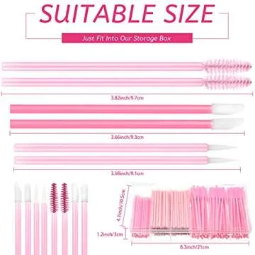 Show more Transform the way you apply makeup with our 263 Pieces Makeup Applicators Tools Kit, an essential collection designed for makeup enthusiasts and professionals alike. This vibrant pink set includes 50 disposable eyeliner brushes, 112 mascara wands, and 100 lipstick applicators, along with a practical plastic organizer box, ensuring you have everything you need to achieve flawless results. Each applicator tool is crafted with attention to detail, offering both functionality and a pop of style to your makeup routine.