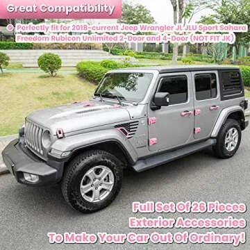 26PCS Full Set Exterior Decoration Trim Kit for Jeep Wrangler JL JLU 2018-2023 Door Hinge Handle Engine Hood Hinge Hood Latch Wheel Eyebrow Side Air Outlet Rear Tailgate Window Hinge Cover (Pink)