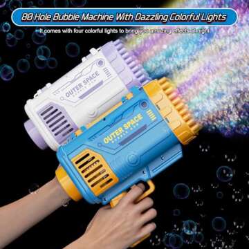 When comparing the **28°C Bubble Machine Gun** to other bubble machines in the market, its superior bubble production sets it apart. Many competitors offer bubble guns with fewer holes and lower bubble output, limiting the fun factor. Additionally, the thoughtful design featuring colorful lights enhances the overall experience, which is often not included in standard models. The **28°C Bubble Machine Gun** also comes equipped with extra supplies, making it an unbeatable value.
